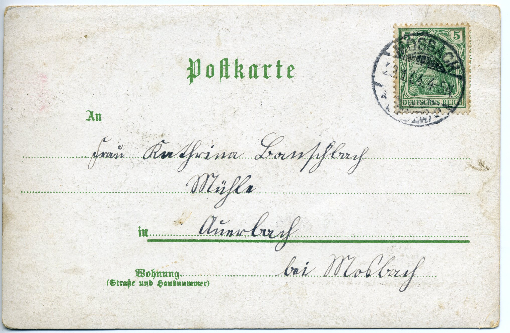 Lieber Otto! Wir haben Deine Karte erhalten und haben uns sehr gefreut, daß Du auch an uns gedacht hast. Zum Dank dafür, möchte ich Dir ein Grüßlein aus Deiner Heimat senden. Zum Schluß wünschen wir Dir noch: Bleibe gesund und werde kugelrund. Deine Mitschülerin Luise Seiler