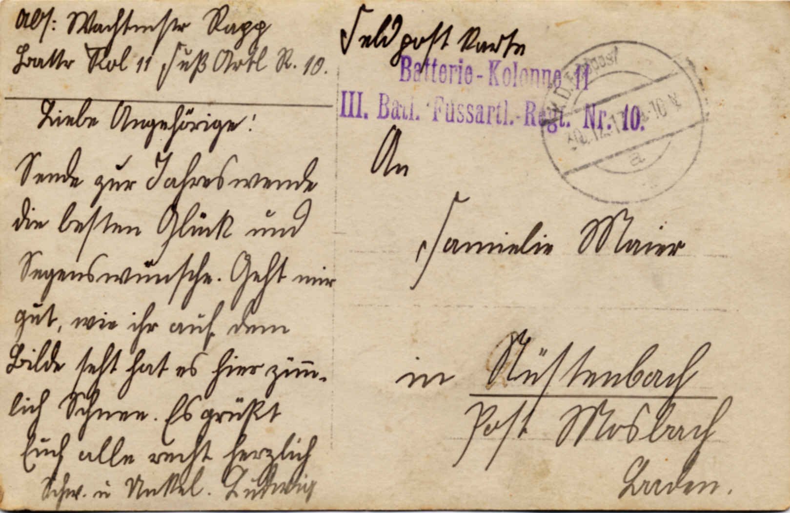 feldpostkarte 1917 ludwig rapp ruckseite