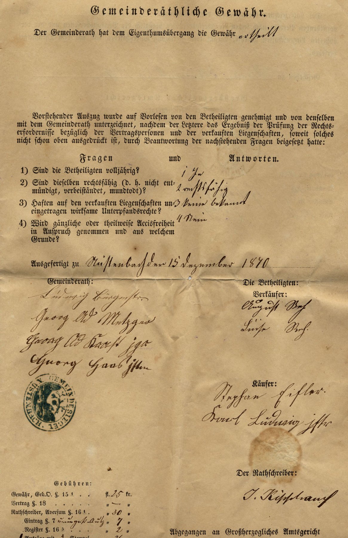 gemeinderathliche gewahr 1870