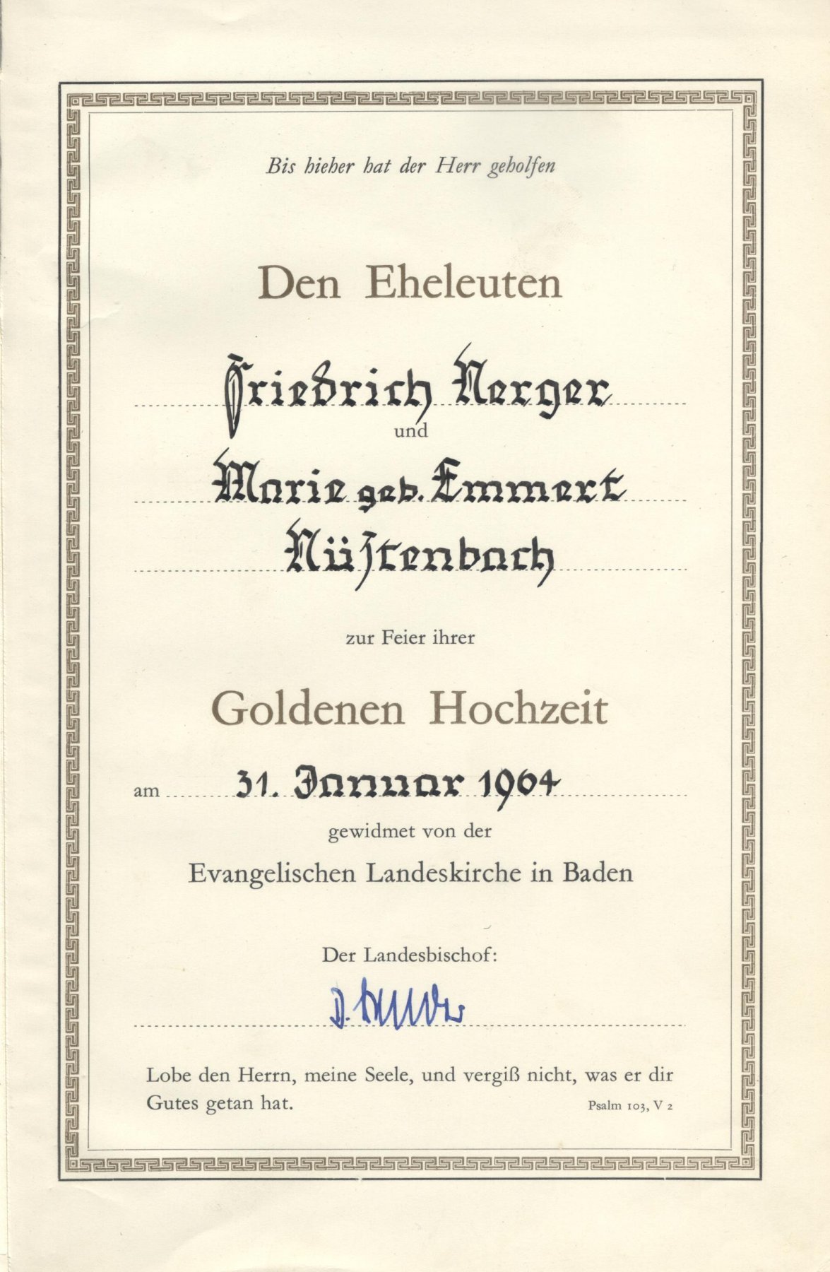 Widmung im Gesangbuch Friedrich Nerger und Marie Emmert