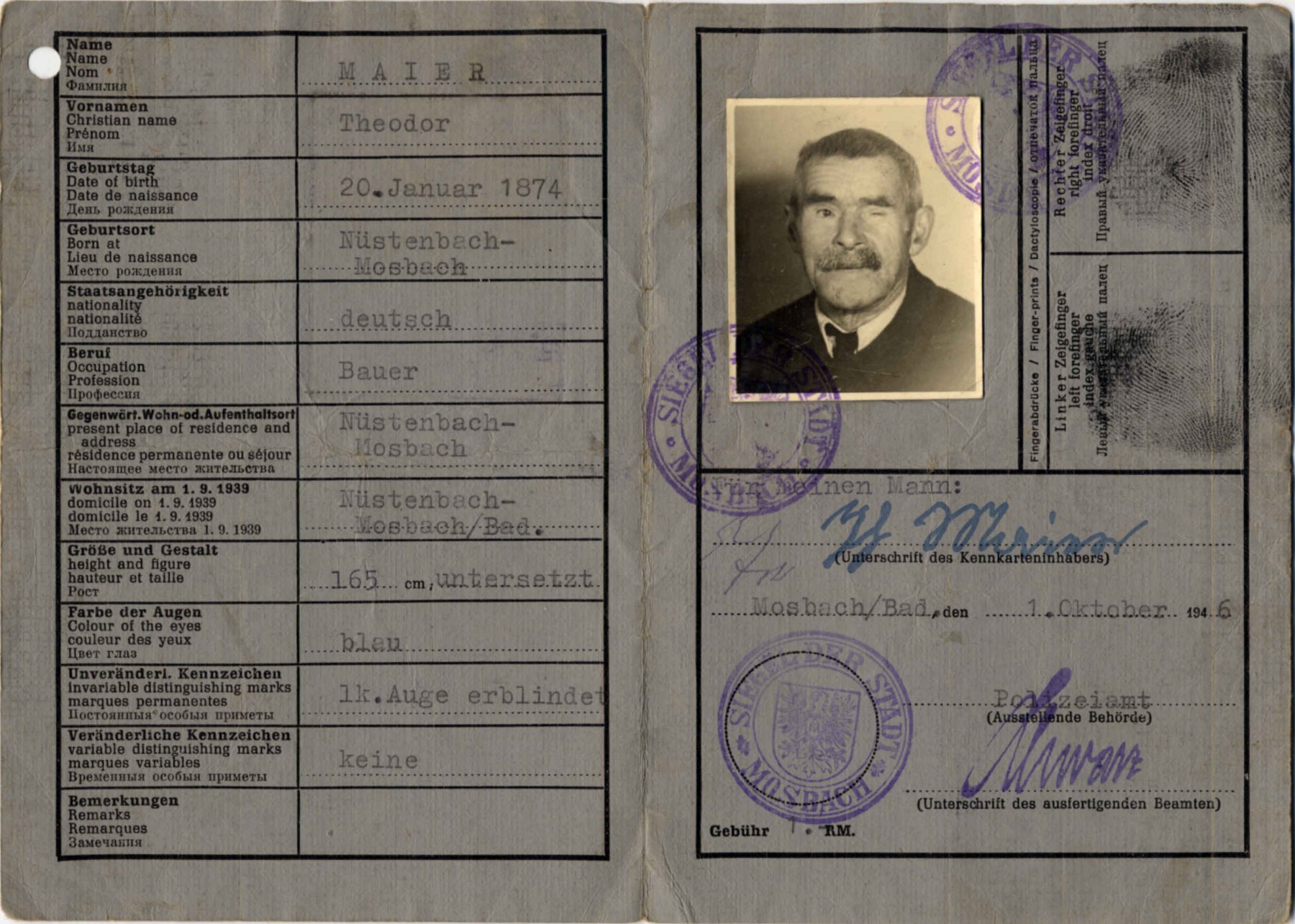 spielerpass hermann kaiser beim fc lohrbach 1948