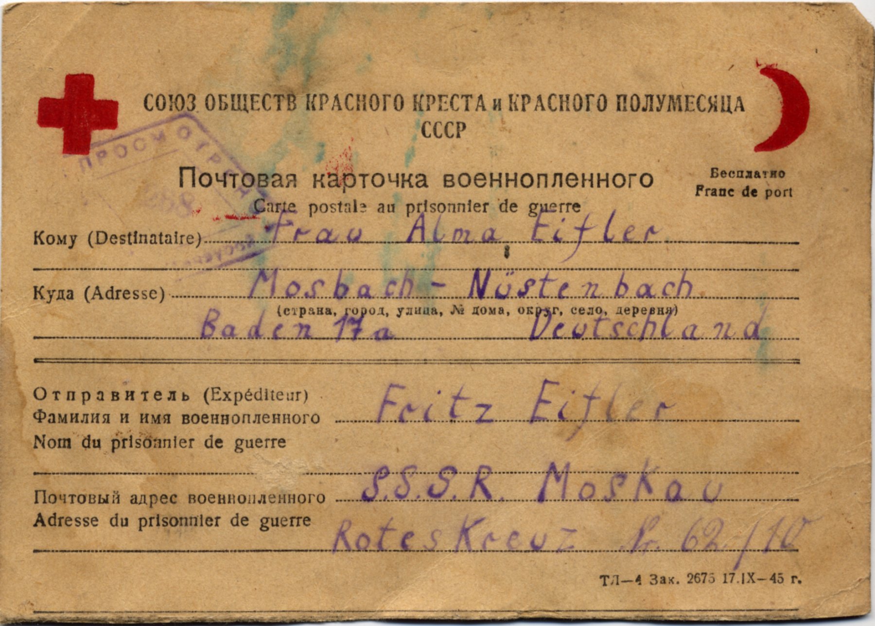 nachricht aus russischer kriegsgefangenschaft 1946