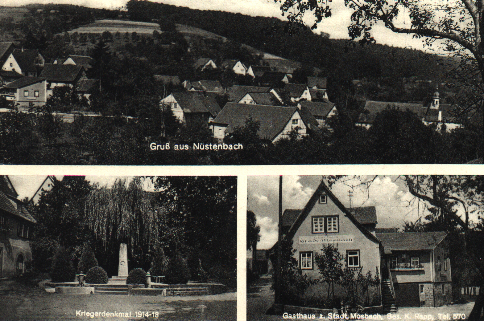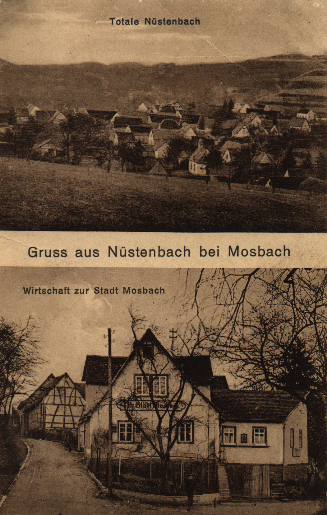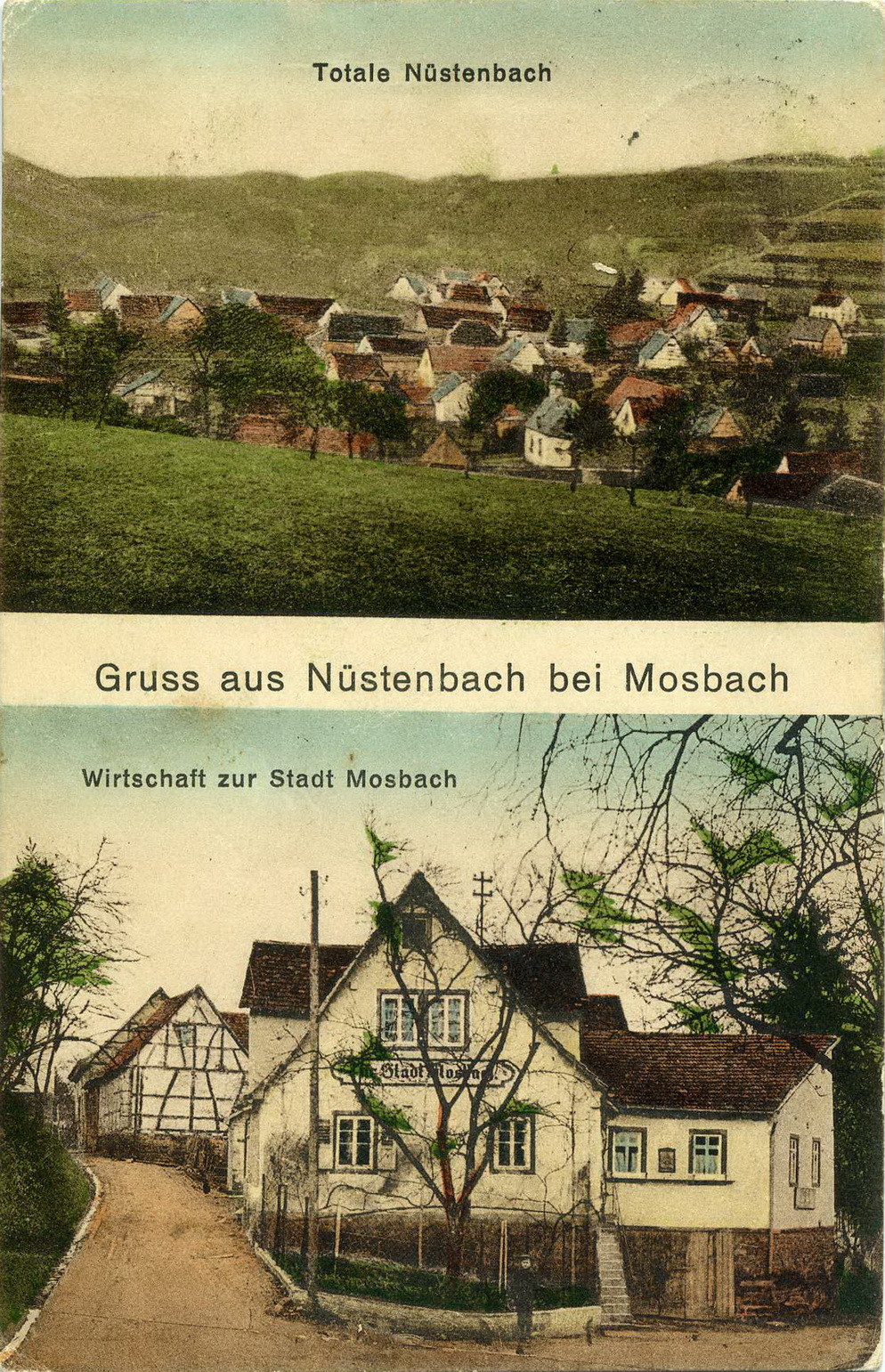 Aufdruck: Nüstenbach / Gasthaus zur Stadt Mosbach / Besitzer Julius Lauer