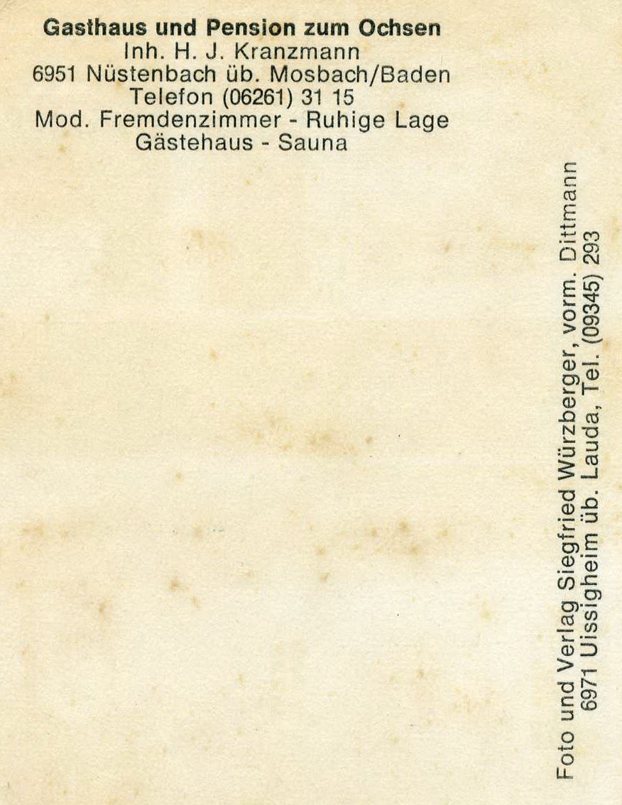 Gasthaus z. Ochsen / Bes. W. Lauer / Nüstenbach-Baden (Verlag Alfred Dittmann Uissigheim, Baden)