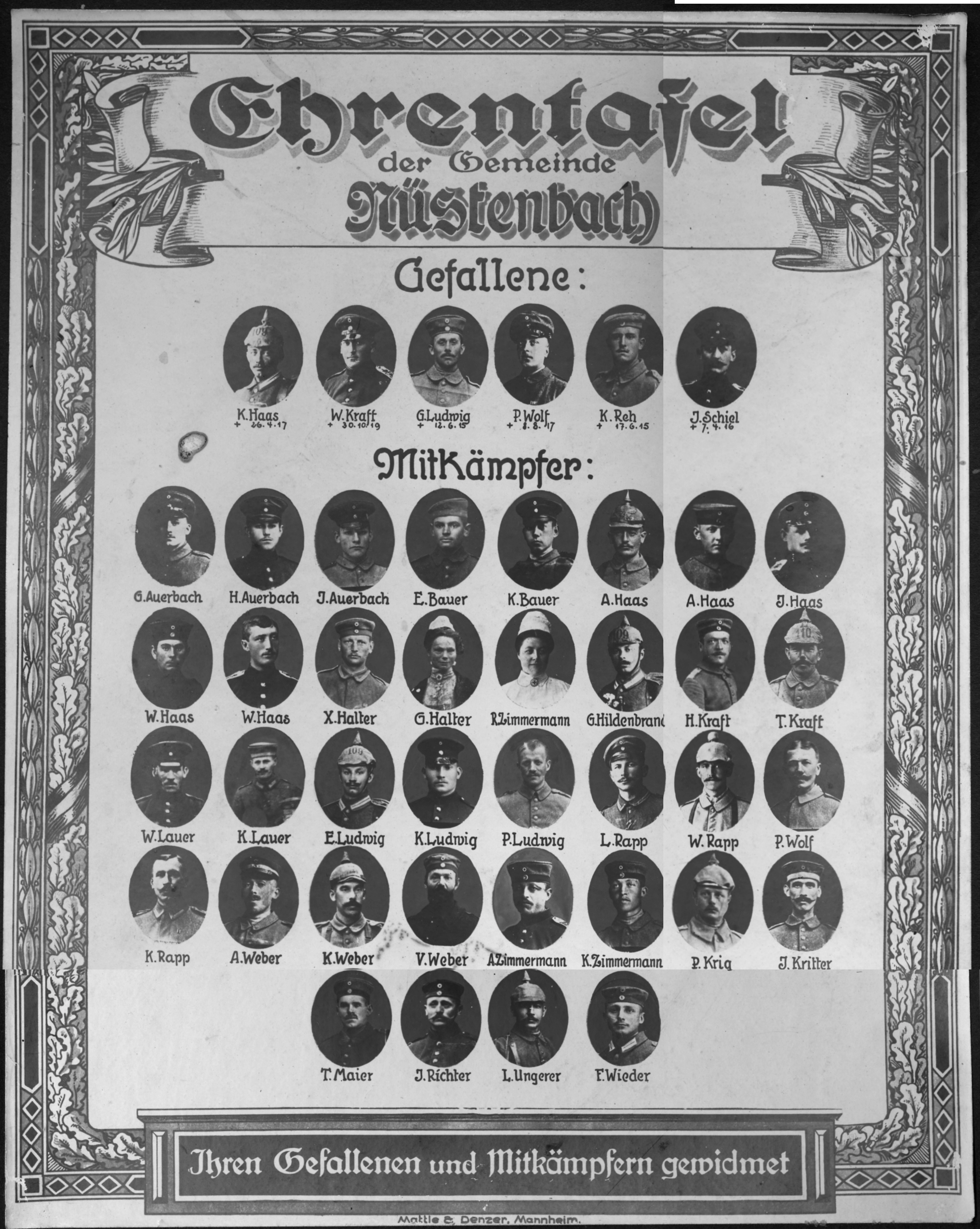 ehrentafel 1914 - 1918