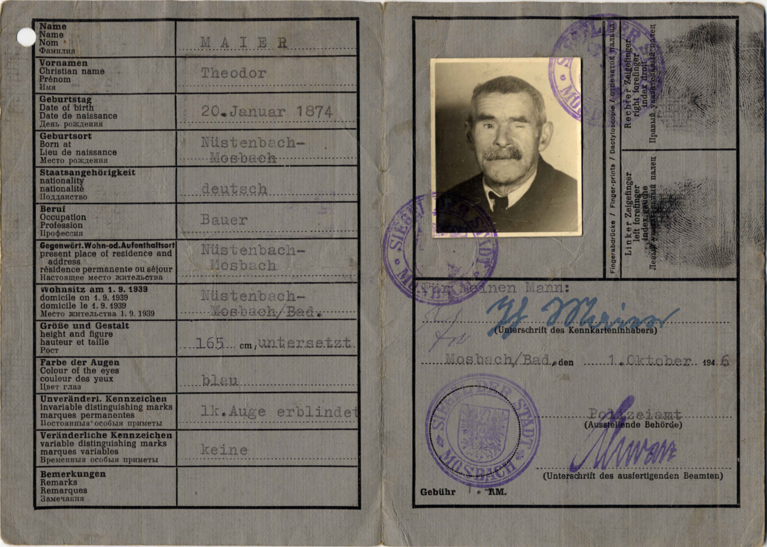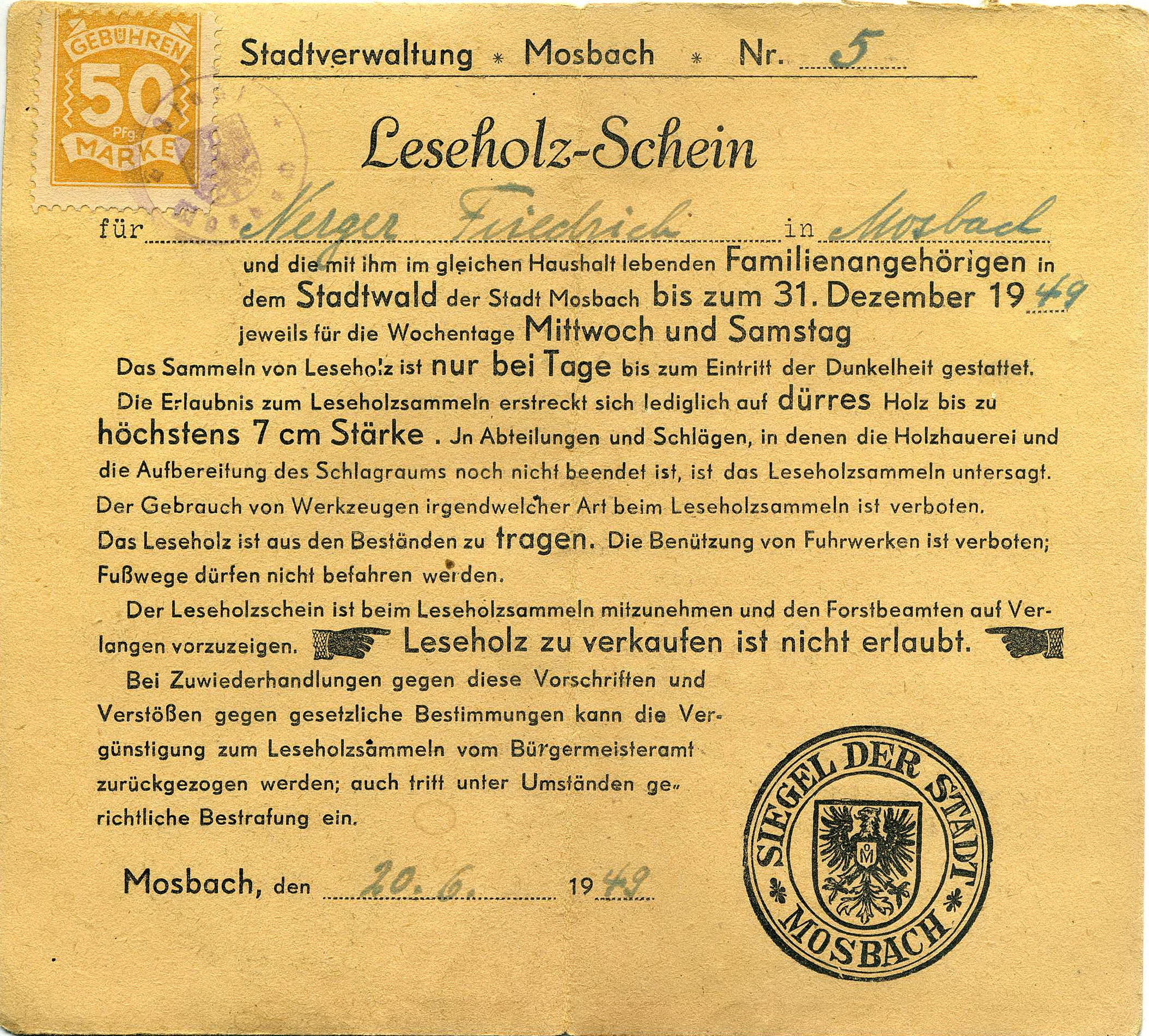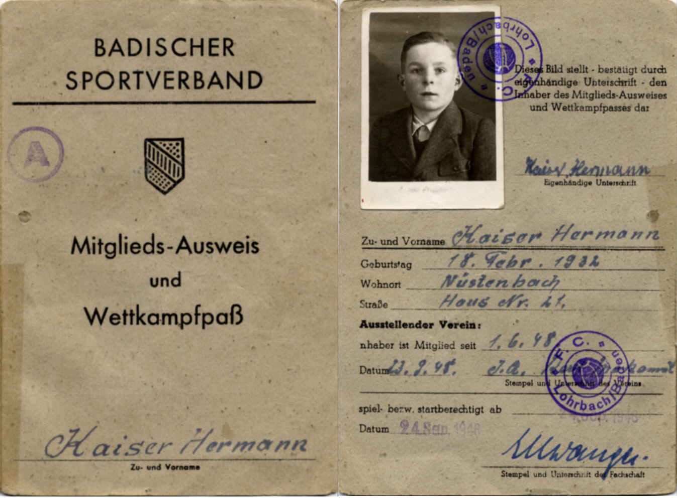 spielerpass hermann kaiser beim fc lohrbach 1948