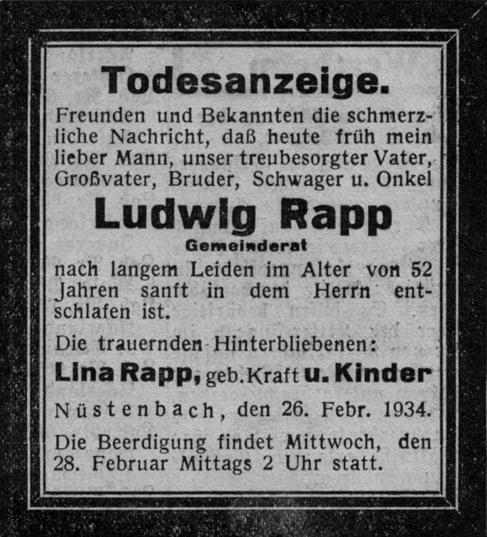 todesanzeige ludwig rapp 1934