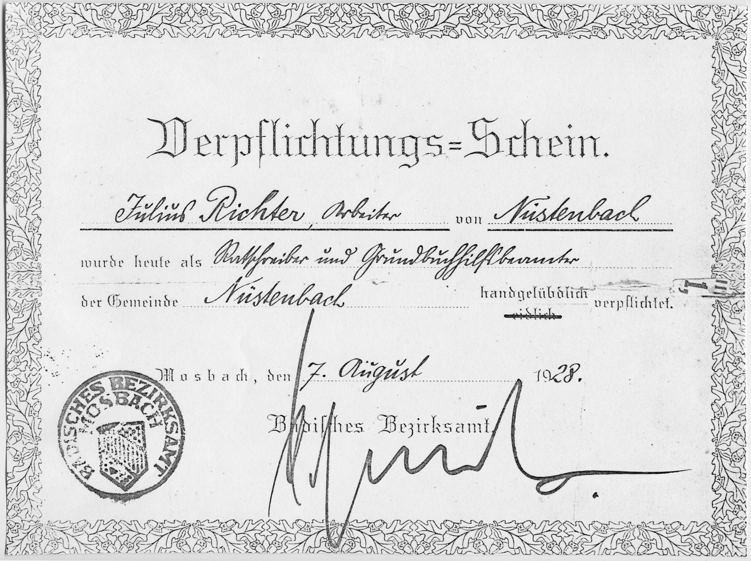 verpflichtung zum ratschreiber und grundbuchhilfsbeamten