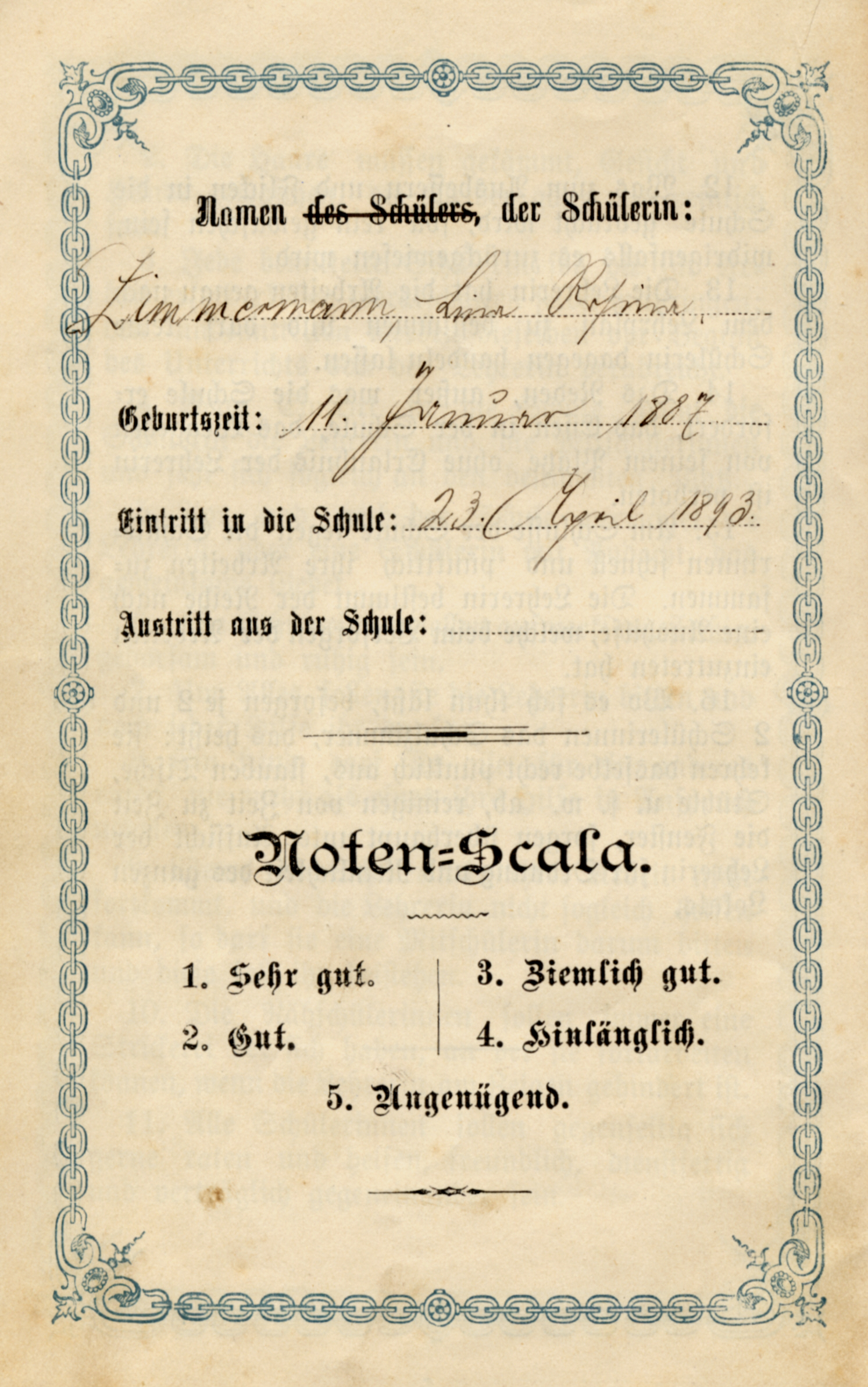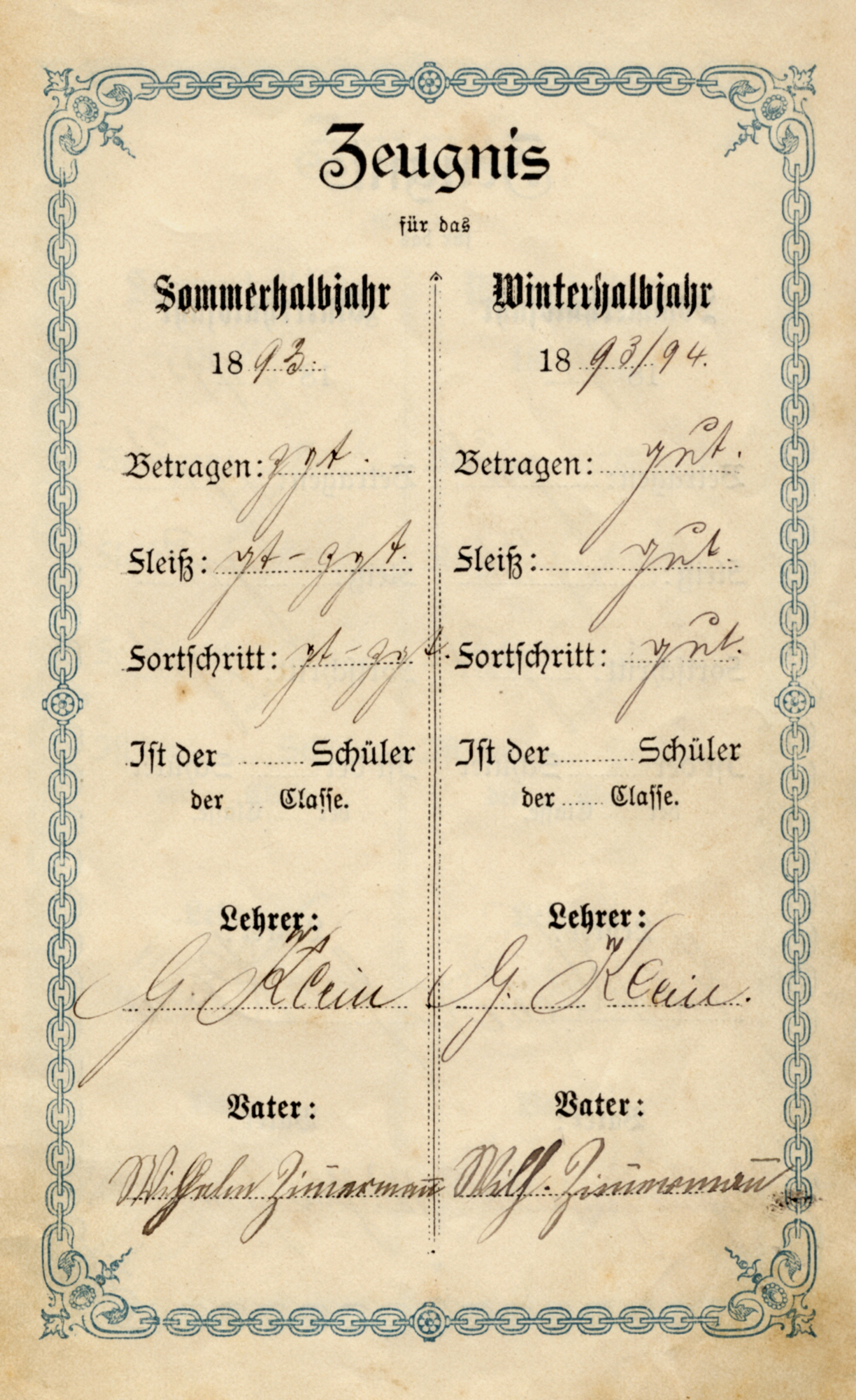 zeugnisbuchlein zeugnis fur 1893_94