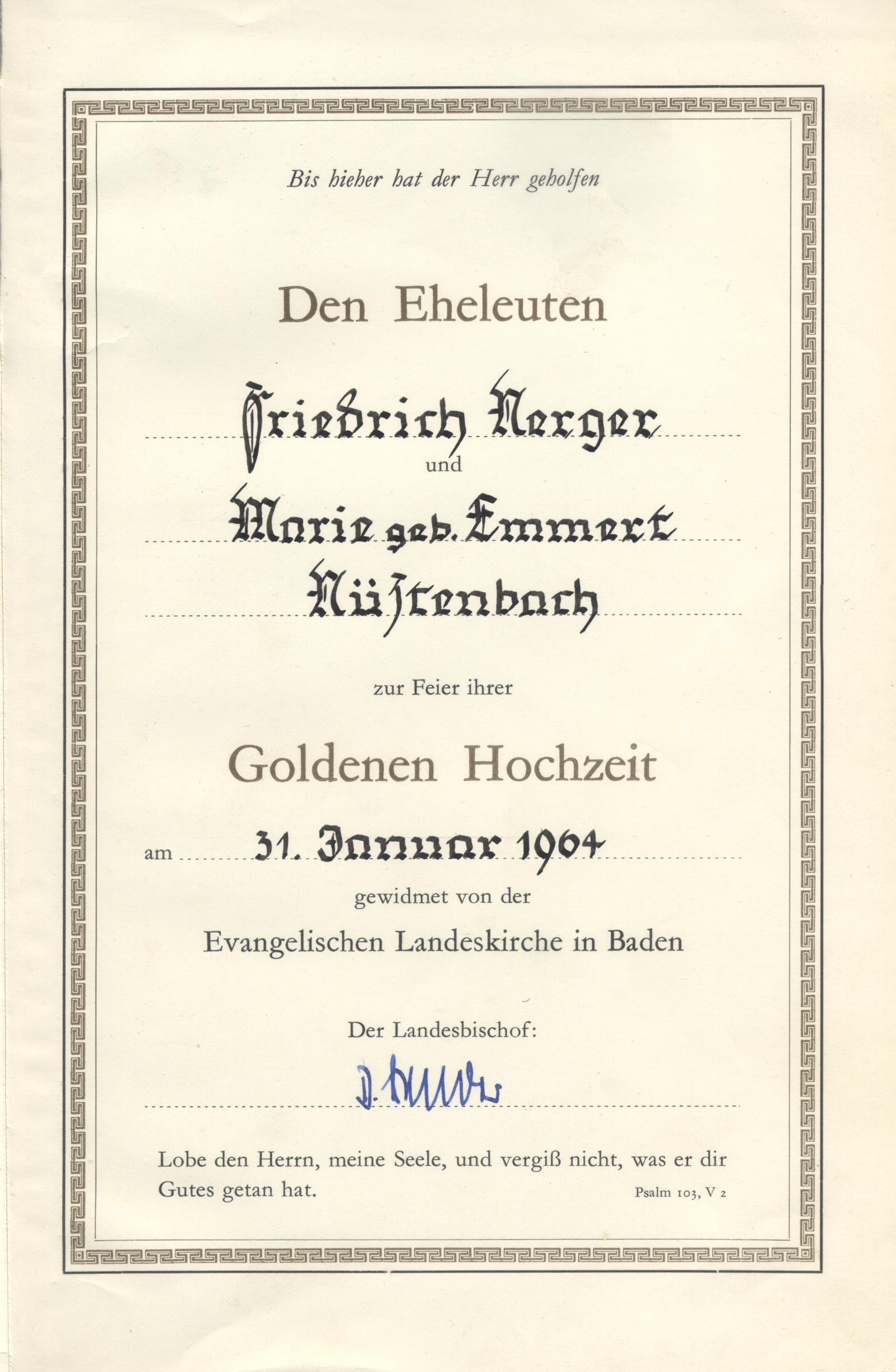 Widmung im Gesangbuch Friedrich Nerger und Marie Emmert