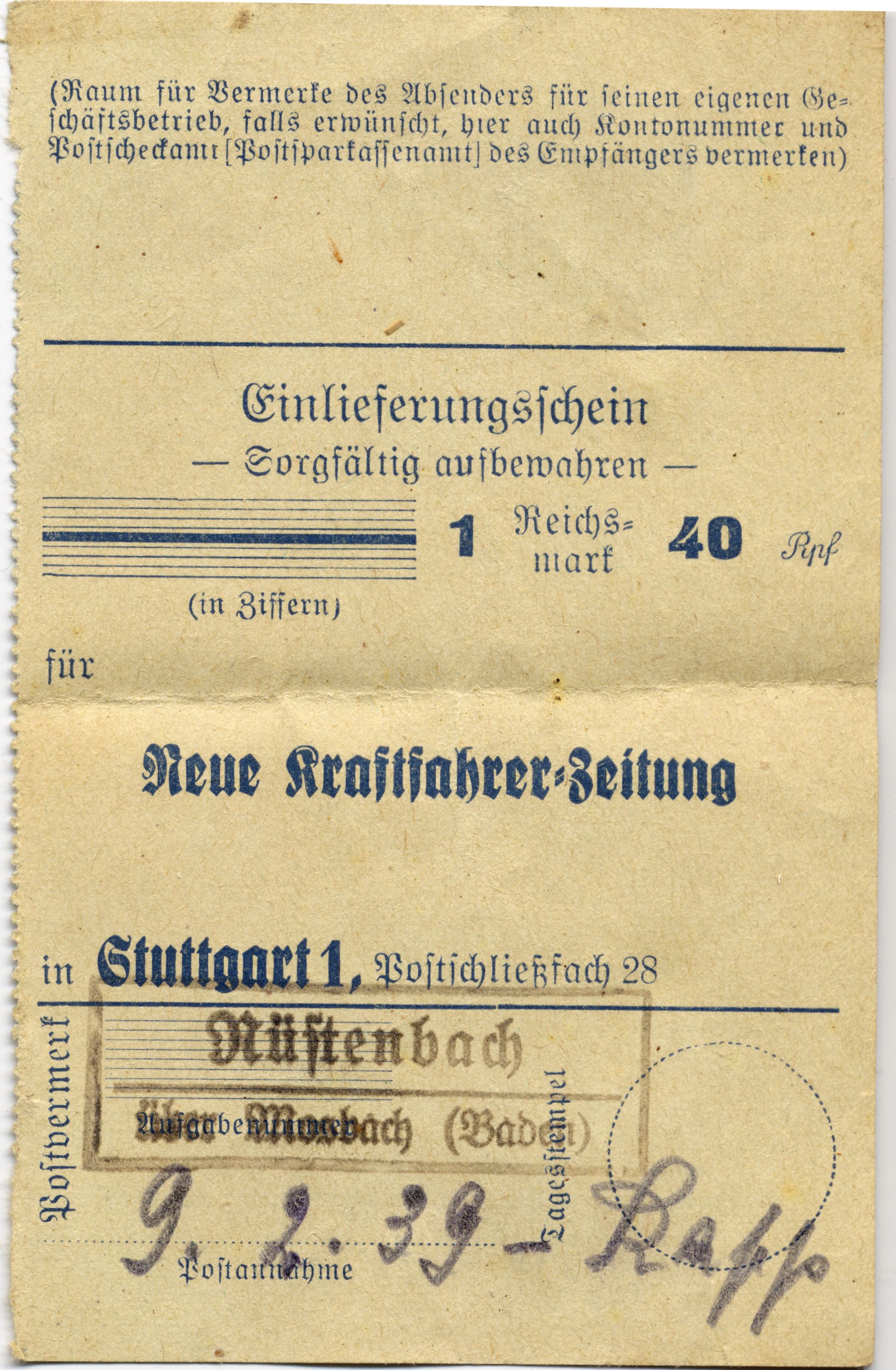 quittungsbuchlein 1927-1937
