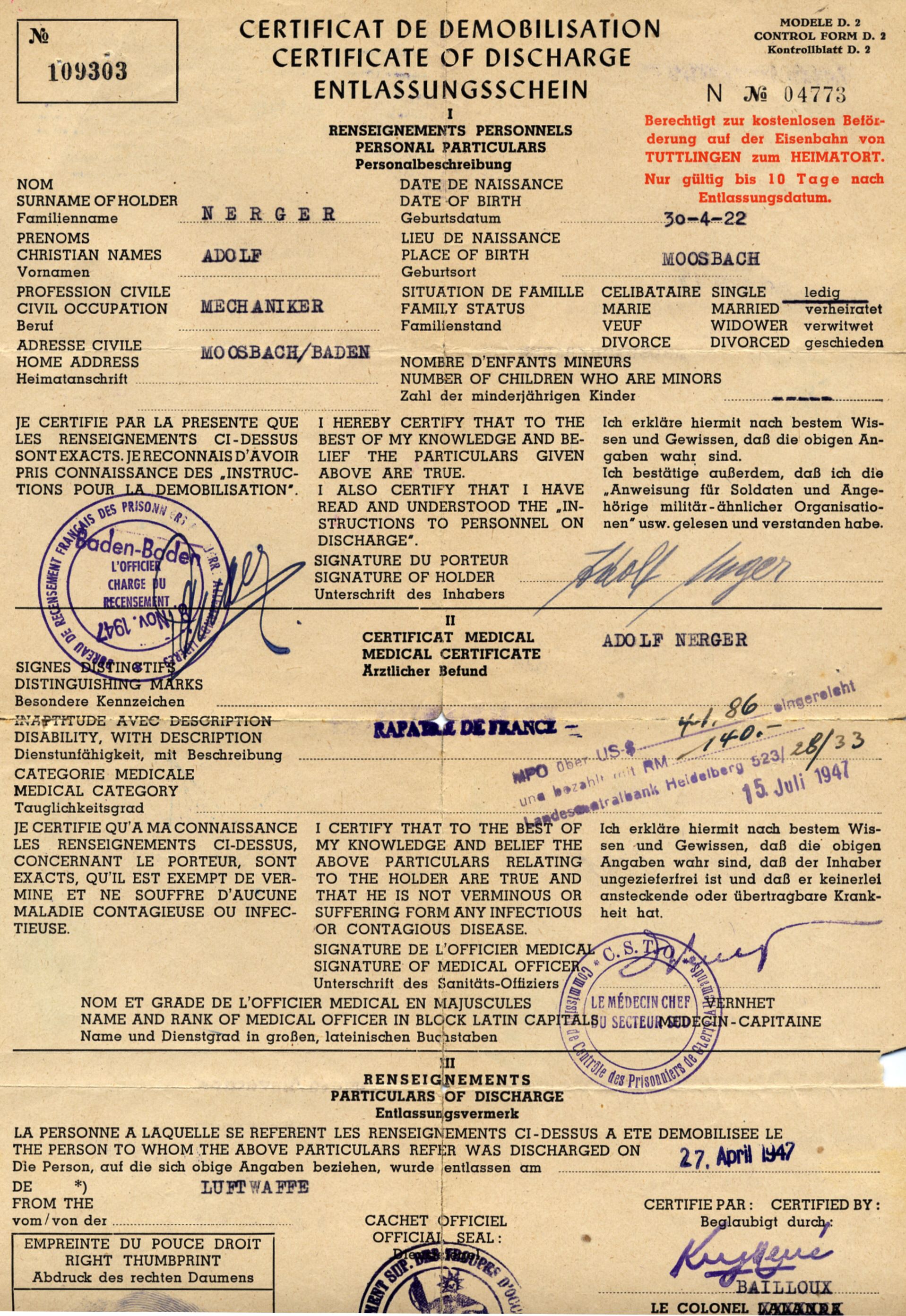 entlassung aus der kriegsgefangenschaft