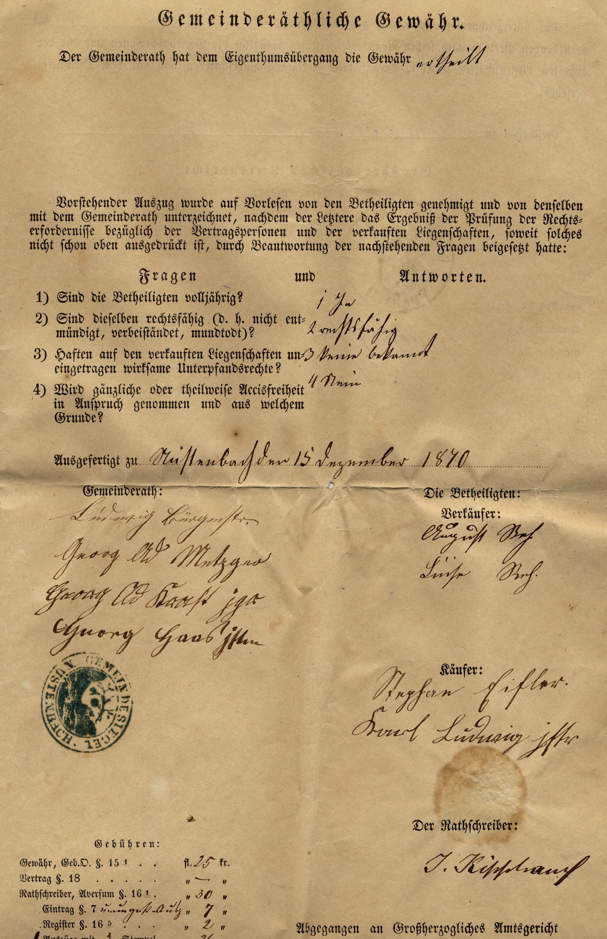 gemeinderathliche gewahr 1870